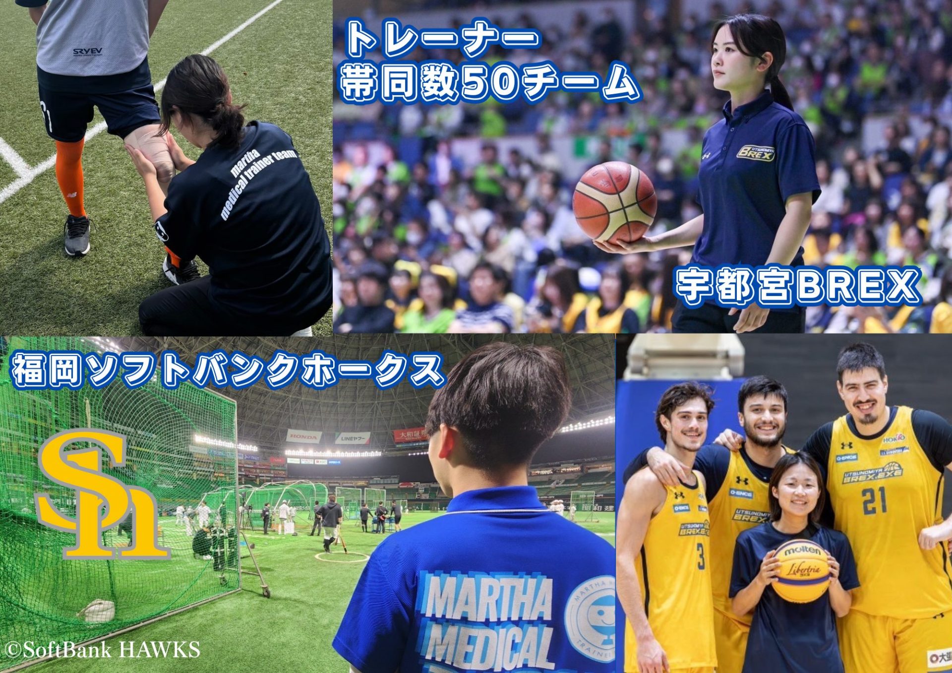 当社はスポーツでプロを目指す学生、プロで活躍する選手たちが怪我で夢を断たれないようにサポートしていくことをミッションとしています。年間3万人以上のスポーツ選手が来院する臨床実績により培ったスポーツ外傷の治療を得意としています。