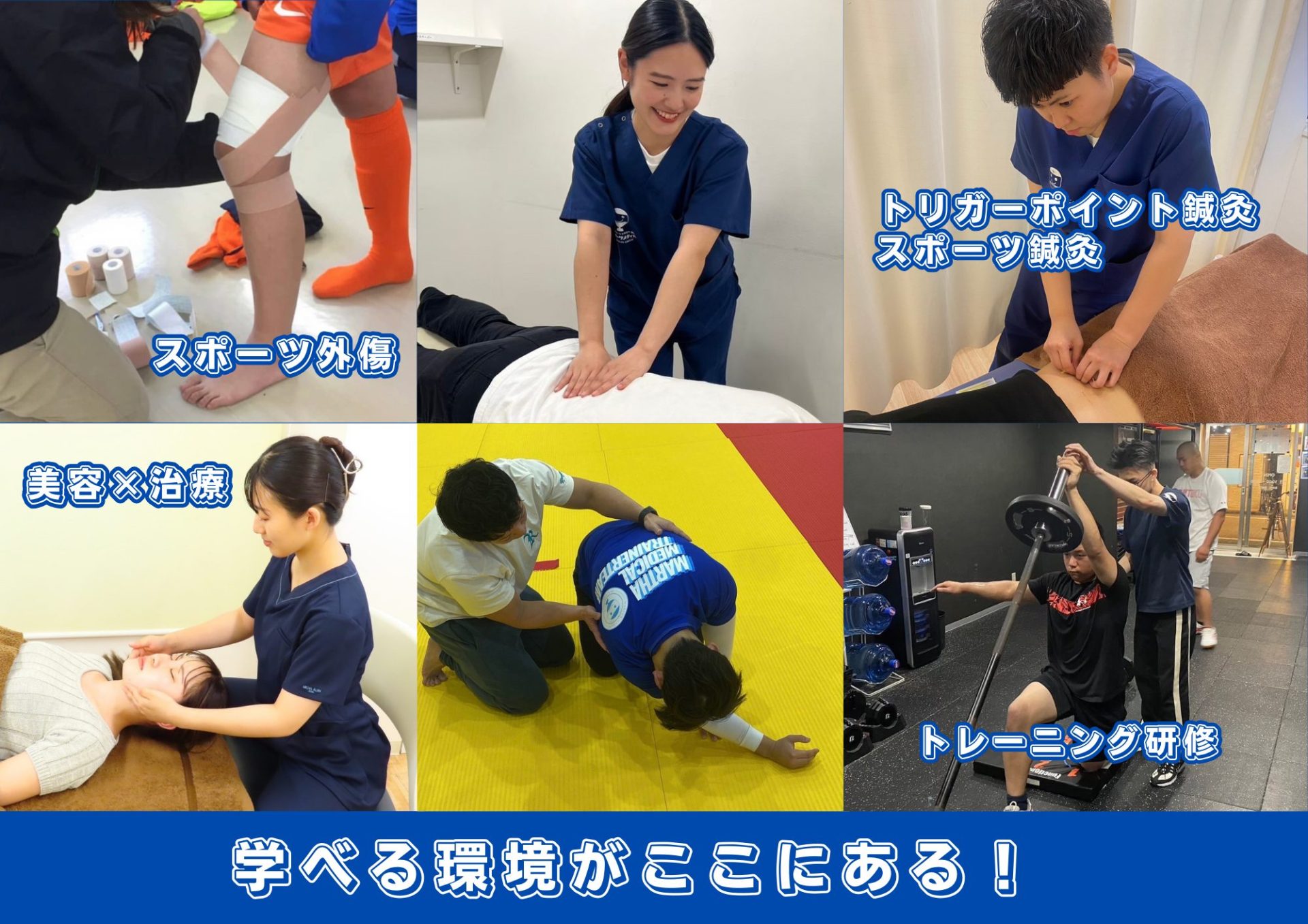 ・開業したい・経営を学びたい・トレーナーとしての技術を学びたい・美容も学びたい・トリガーポイント治療を学びたい・スポーツ外傷を診れるようになりたい・とにかく鍼の技術を極めたい!などなど充実の社内研修制度があり、福岡ソフトバンクホークス帯同トレーナー、アイドルグループトレーナーなど豪華講師陣から学ぶことができます!