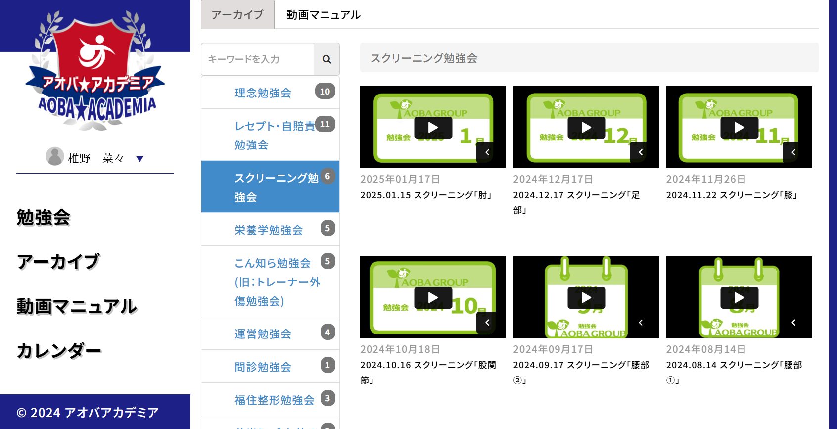 あおばには、トリガーポイント指圧・骨格矯正・鍼・鑑別・その他技術知識・理念&人間力と全6種の独自テキストがあり、これを基に研修と勉強会を進めていきます。また、スタッフがいつでもどこでも視聴できる技術や知識に関する動画や、勉強会のアーカイブも用意しているので安心です。スタッフの“学びたい”の気持ちに応えられる環境が整っています!