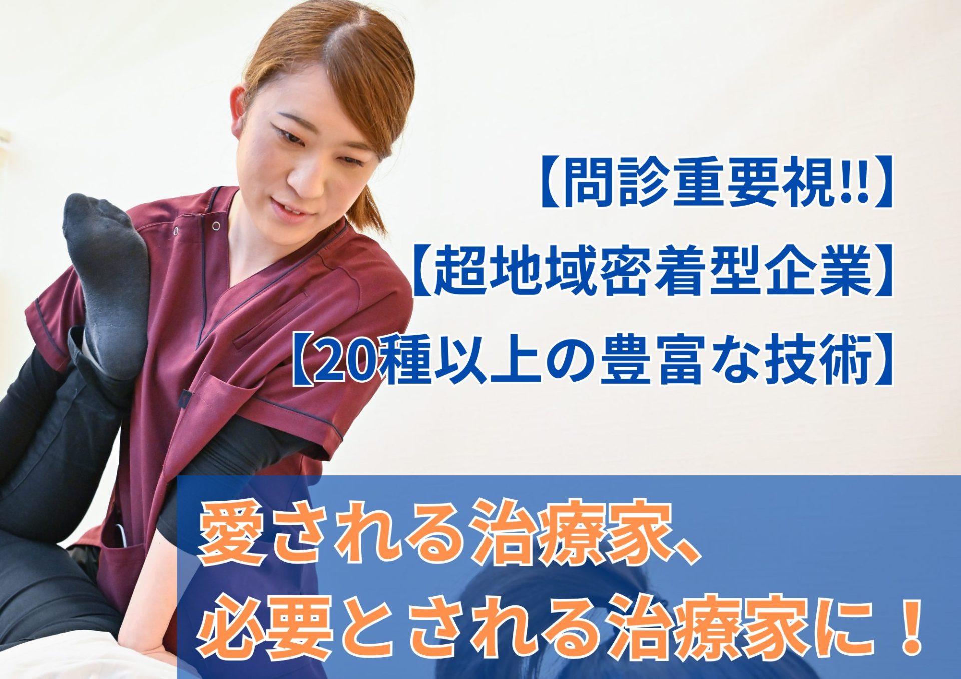 当院には骨盤矯正や美容鍼など【20種類以上の技術】があり、これらを段階的に無理なく習得できるカリキュラムを組んでいます。 私たちが技術と同じくらい大切にしているのが、患者様の心に寄り添う「人間力」です。配属後も院長やマネージャーがマンツーマンでつく制度のもと、技術と心を磨き、地域の方々に「先生だから任せたい」と言われる「愛される治療家」を目指しましょう。