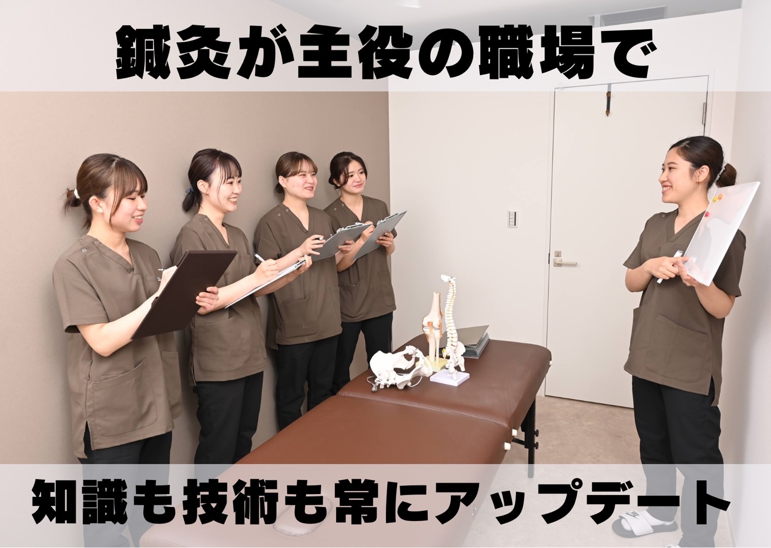 スポーツ外傷から美容鍼、骨盤矯正まで幅広いメニューを扱い、豊富な症例数の中でスピーディーに成長可能です。風通しが良く、やりたいことに挑戦できる環境で、仲間と共に夢を叶えませんか?