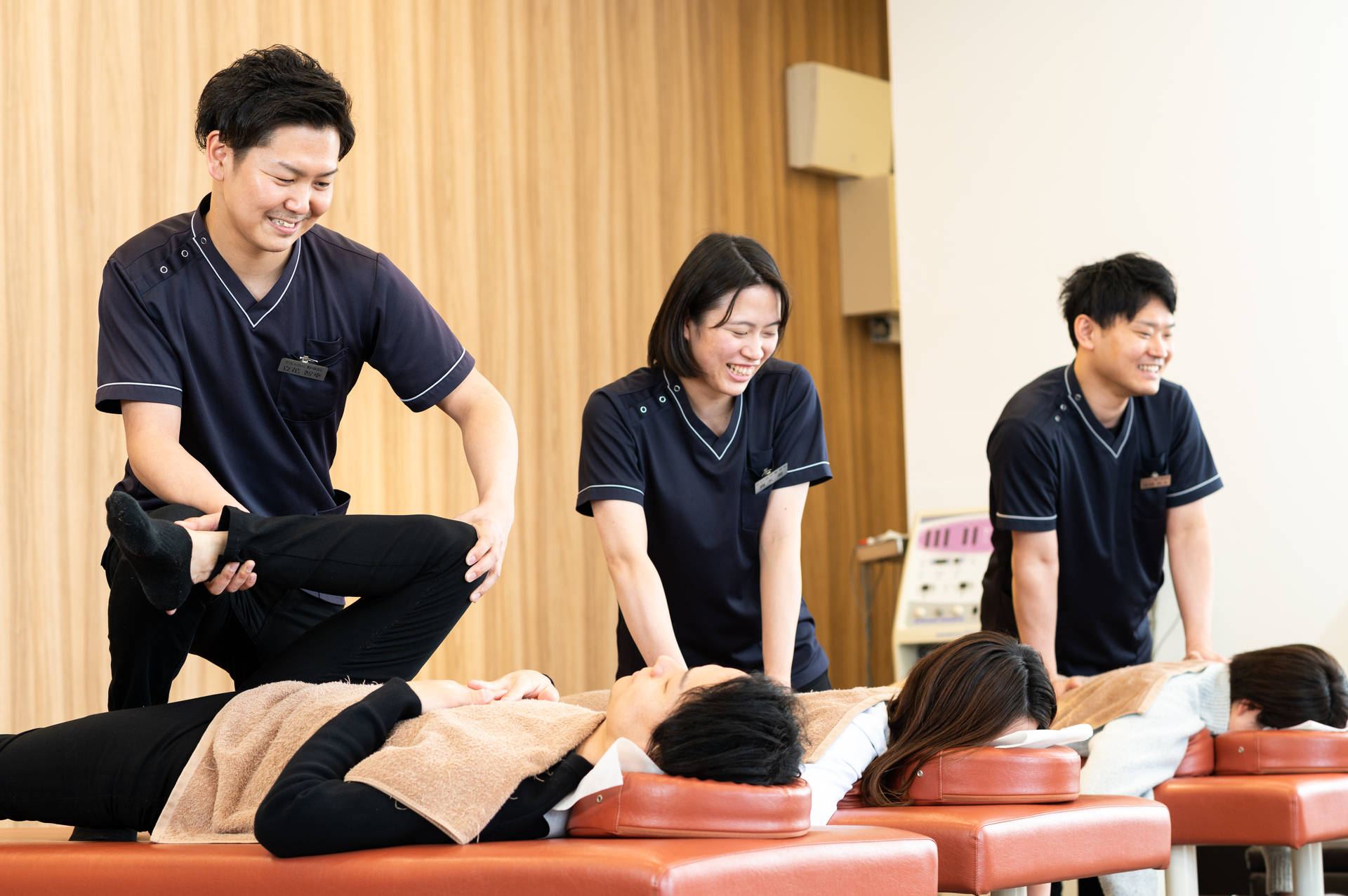 入社後2ヶ月間の初期研修で、基礎技術を身に付けた上で、治療家としての第一歩を踏み出すことができます。現場配属後も、社員専用サイトで治療について学ぶことができるほか、自由参加の勉強会も実施しています。