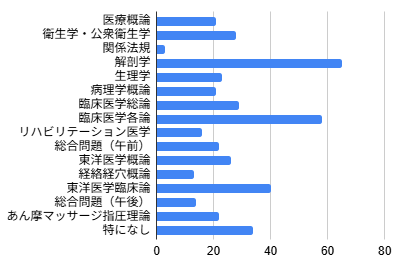 【はりきゅう】国試の勉強として費やした時間が長かった科目はどれですか?