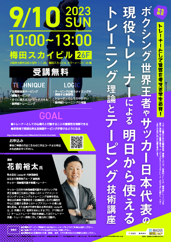 【学生限定】トレーナーとして進路を考える学生必見! ボクシング世界王者やサッカー日本代表の現役トレーナーによる 明日から使えるトレーニング理論とテーピング技術講座