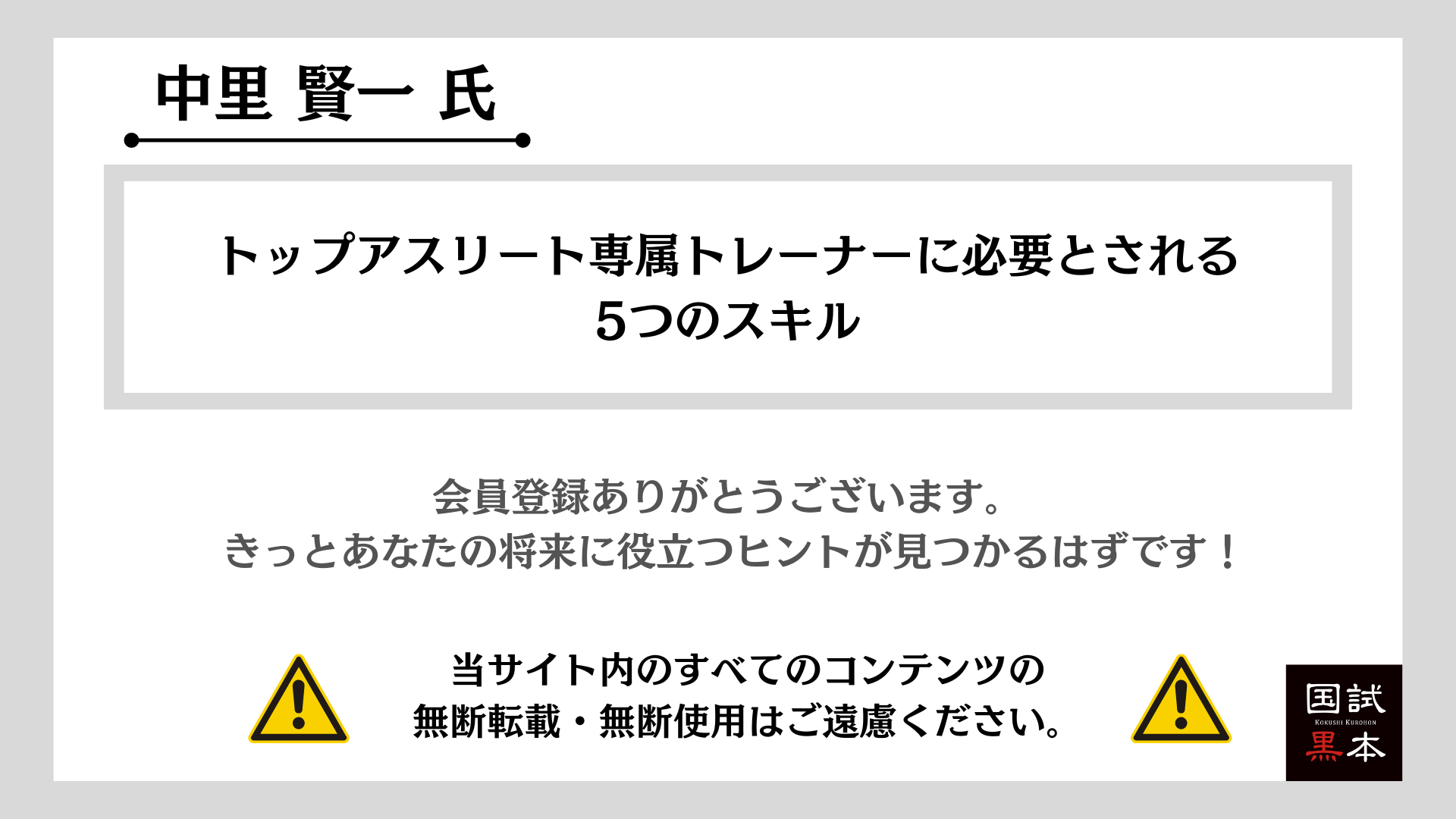 【無料セミナー動画】トップアスリート専属トレーナーに必要とされる5つのスキル|中里賢一