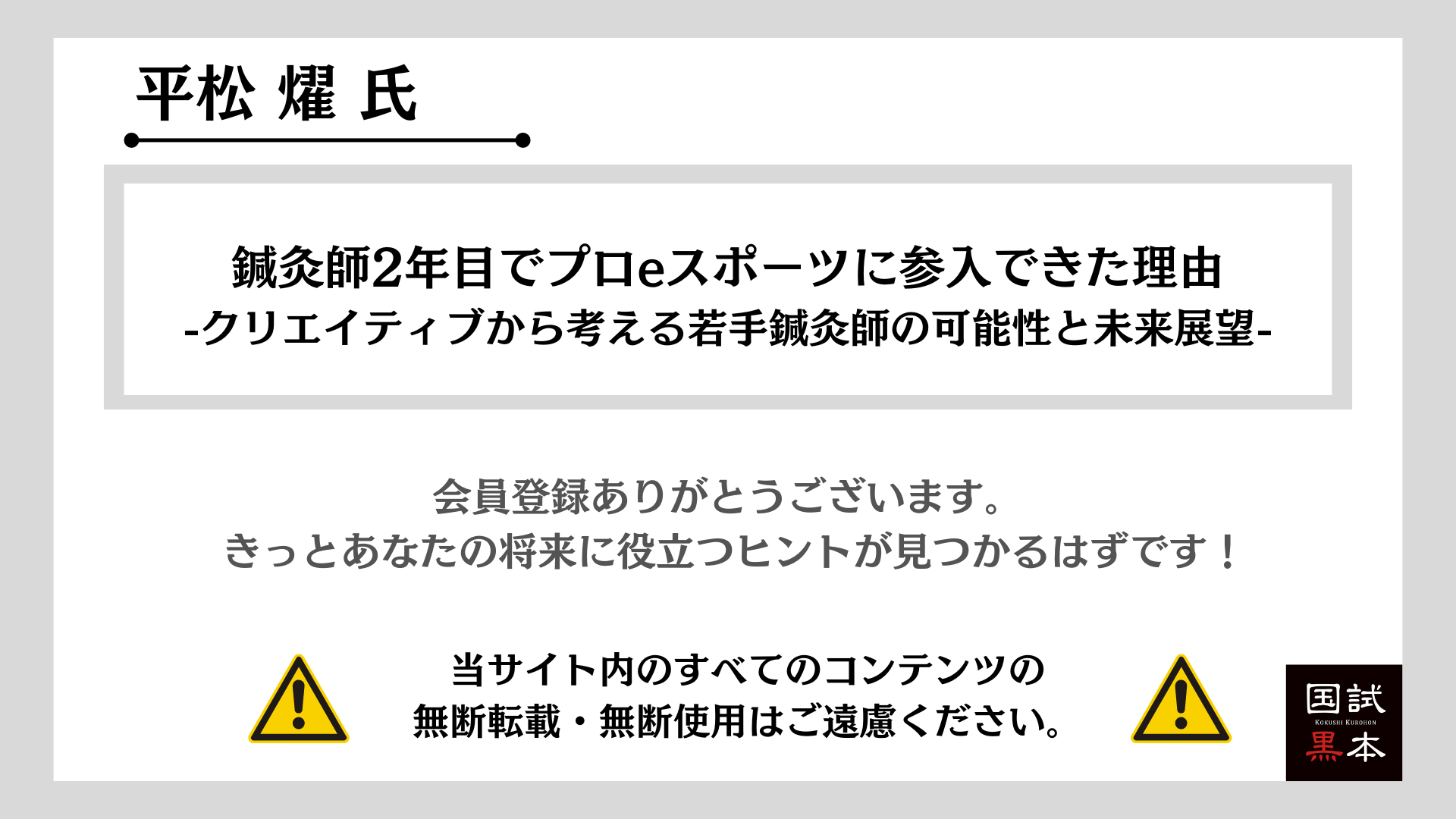 【無料セミナー動画】鍼灸師2年目でプロeスポーツに参入できた理由 -クリエイティブから考える若手鍼灸師の可能性と未来展望-|平松燿