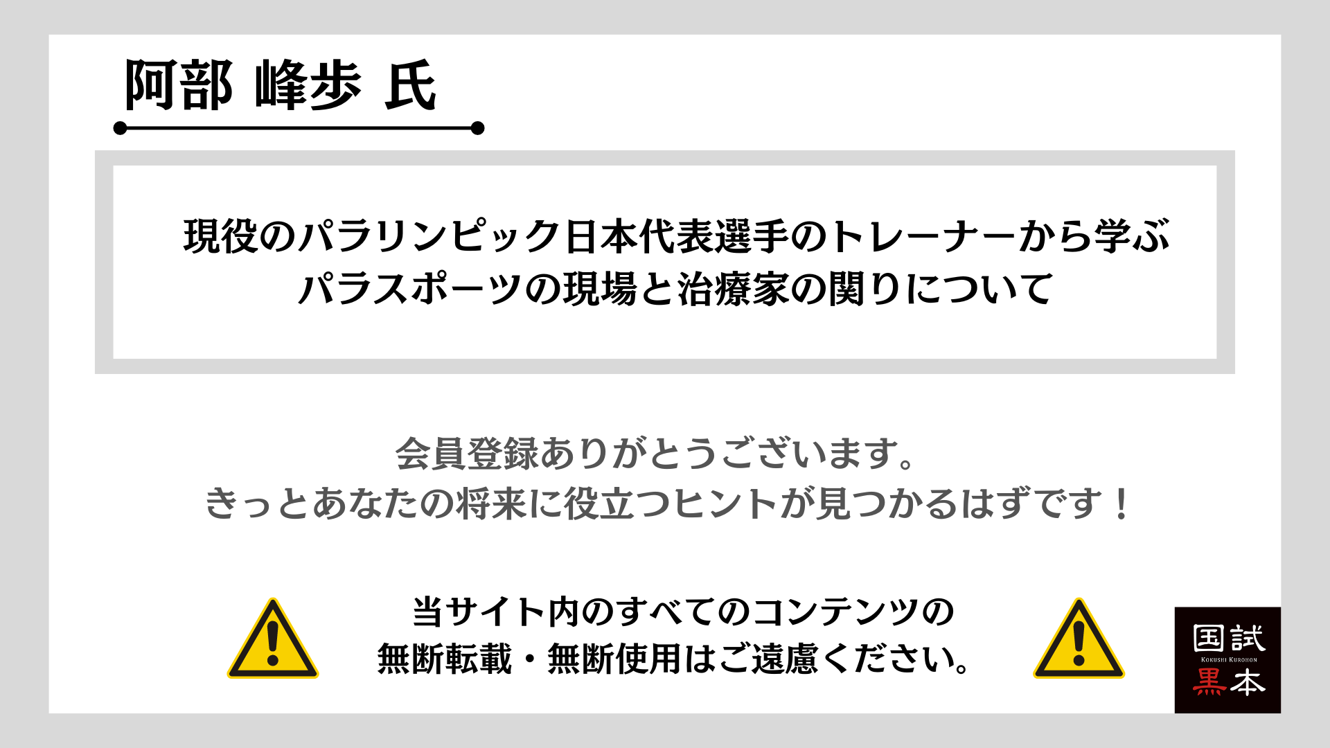 【無料セミナー動画】現役のパラリンピック日本代表選手のトレーナーから学ぶ パラスポーツの現場と治療家の関りについて|阿部峰歩